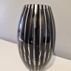 Dekorativ kruka i svart och frostat glas