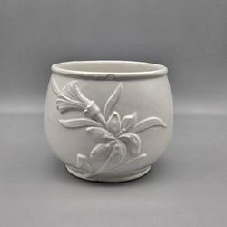vit keramik kruka med dekorativt druvmotiv.