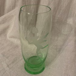 Vas med etsat motiv, kristall, Ljusgrön