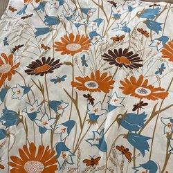 Vintage påslakan i brun, rosa, vit, beige med svampar och blommor 60-tal 70-tal