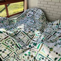 - Modernt överkast i geometriska former och neutrala färger