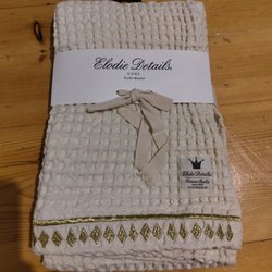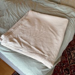 - Elegant överkast i linne med en subtilt randig design