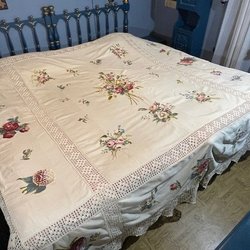 - Vintage överkast med romantiska blommönster
