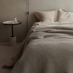 - Elegant överkast i linne med en subtilt randig design