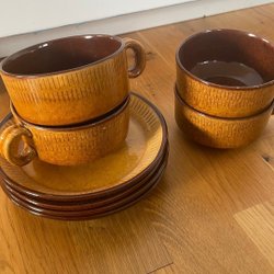 Stengods Kaffekoppar med fat