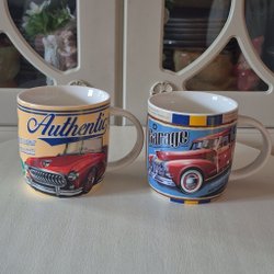 Två muggar med bilmotiv