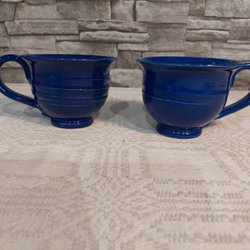 Två Blåa te Koppar keramik
