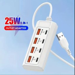 8-Portars USB Laddstation 25W – Snabbladdning med USB & Type-C
