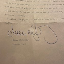 Claes Elfsberg, autograf på brev Rosa papper
