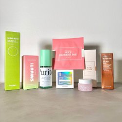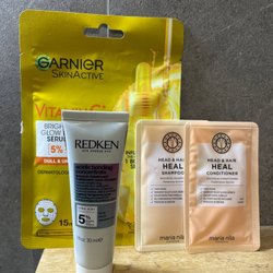 Paket med skönhetsprodukter , serum , glow tonic mm