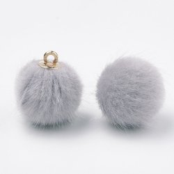 Charms - Berlock - konstgjord mink boll- grå/mässing - 17x15mm