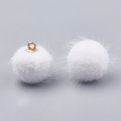 Charms - Berlock - konstgjord mink boll- vit/mässing - 17x15mm
