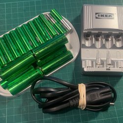 IKEA batteriladdare med 21 uppladdningsbara batterier