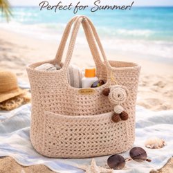 Handgjord virkad strandväska i beige