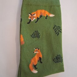 1 Par Trendiga Rävmönstrade Strumpor. Nr.4 One Size. Grön med Räv.