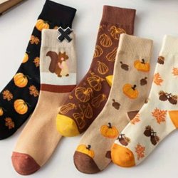 1 Par Trendiga Strumpor med Ekollon och Löv! One Size.