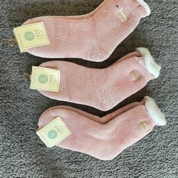 Rosa dam höst och vinter extra tjocka plysch mellanlånga strumpor x 3 par