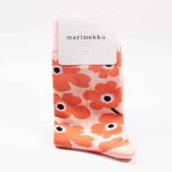 Marimekko strumpor: Klassiskt blommigt mönster - Nude/Orange