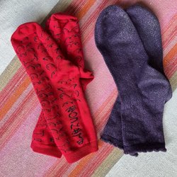 Rosa, lila, bruna, grå strumpor