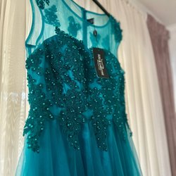 Blågrön klänning, S, balklänning, studentklänning