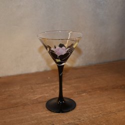 Ett vackert vintage Cocktail glas Domino Black Floral anais från Luminarc