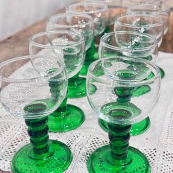 Snapsglas 10 st grön fot 7,5 cm retro små glas