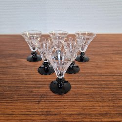 6 snapsglas med svart fot, 1900-tal, 6,5 cm höga