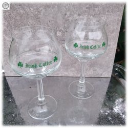 Paret kupade Irish Coffee glas med grönt klöver Fint skick.