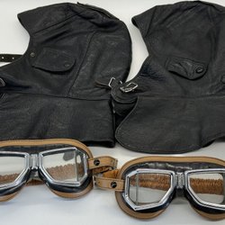 MOTORCYKEL / MC GLASÖGON ETT PAR CLIMAX + ETT PAR SKINNHUVOR I SVART SKINN
