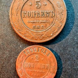 Ryssland: Samlarmynt 5 Kopek 1869 låg upplaga + 2 Kopek 1899