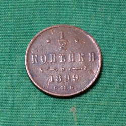 Ryssland 1899 Mynt 1/2 Kopek Kv.6