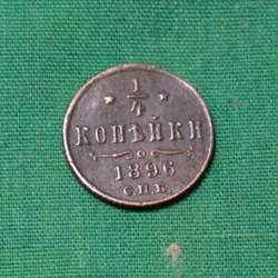 Ryssland 1896 Mynt 1/4 Kopek Kv.8
