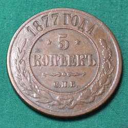 Ryssland 1877 Mynt 5 Kopek Kv.8