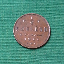 Ryssland 1842 Mynt 1/2 Kopek Kv.4