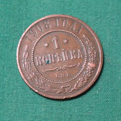Ryssland 1908 Mynt 1 Kopek Kv.6