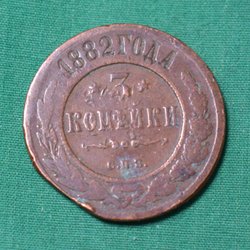 Ryssland 1882 Mynt 3 Kopek Kv.4