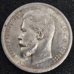 50 Kopek 1913. Vikt ca 10,00 gram i silver. Kvalité. 1+/01. Skrift i latin.