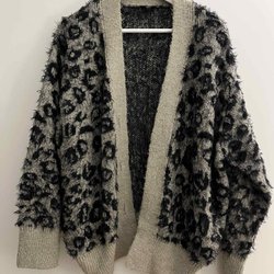 Grå, svart, leopardmönstrad kofta M