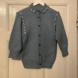 Vintage hand stickad Ljusblå kofta, storlek S