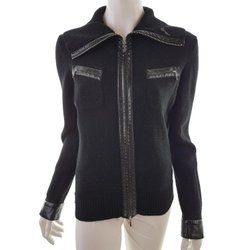 APRIORI Kofta med Dragkedja 38 Svart Ull Tunn stickning Lång ärm Hög hals