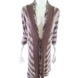 JAMES LAKELAND Lång Kofta Kappa Med Band M Brun Tjock stickning Lång ärm Ränder