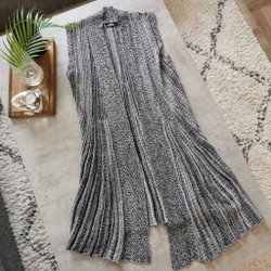 MILIEU Lång Öppen Koftkappa M Grå Bomull 100% Tunn stickning Lång ärm Volang