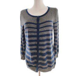 JAEGER Lång Knäppt Kofta M Grå Viskos Tunn stickning Lång ärm Logotyp Ränder