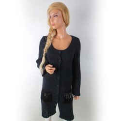 SARAH PACINI Lång Öppen Kofta 42 Svart Merinoull Tjock stickning Lång ärm Öppen