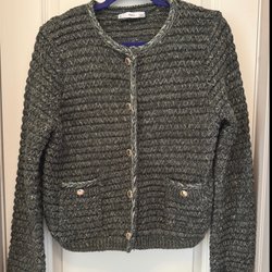 Mango kofta / cardigan, storlek M, grön och guldmelerad