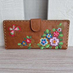 Lavishy Brown Floral Embroidered Faux Leather Wallet