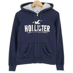 Hollister Vintage Zip Hoodie Blå Bomullsklassisk Damtröja storlek XS