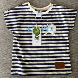 Geggamoja randig marinblå t-shirt, storlek 122/128