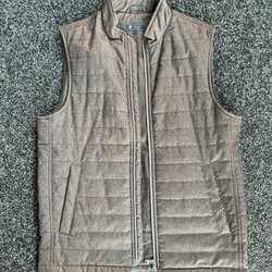 Brun mocka + grå foder väst, storlek M, Outerwear