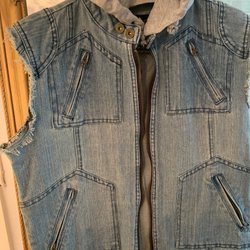 BLK DNM blå jeansväst med fransar, storlek M